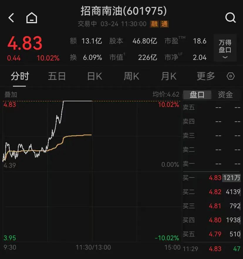 3月24日,航运板块盘中震憾走强。个股方面,招商南油涨停,中远海能、招商汽船、海航科技、国航远洋等多只个股跟涨。